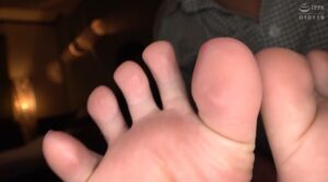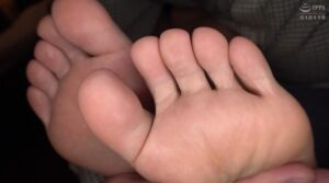 ちなみに1:54:41からは屈曲位で犯され中出しされる際にも、左足の足指部分の足裏が登場し、中出しまで20秒、中出し後は3秒ほど見ることができます。足裏の一部しか見えていないのが残念ですが、中出しシチュの足裏はちょっと貴重かもですね。