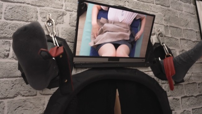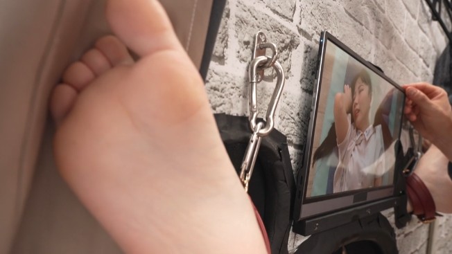12:42(2)からはこれまでと同じく、M字開脚拘束の足裏が49:10(2)辺りまで続きます。他の2人と比べると、足裏が見えたり見えなくなったりするシーンが多めな気がしたのですが、一部迫力のあるドアップ足裏も見られたりするので、見応えにはあまり影響は無いでしょう。