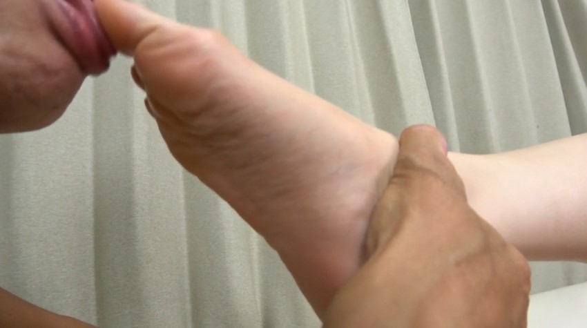 1:04:00 うつ伏せでフェラしながらの両足の足裏が見えており、その後は横向きに寝た体勢で、足指をにぎにぎしまくる足裏にぶっかけられてフィニッシュ。