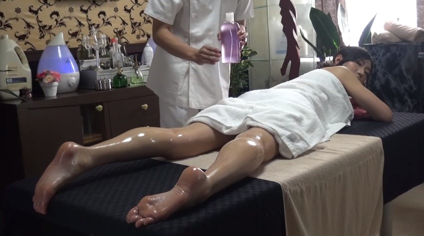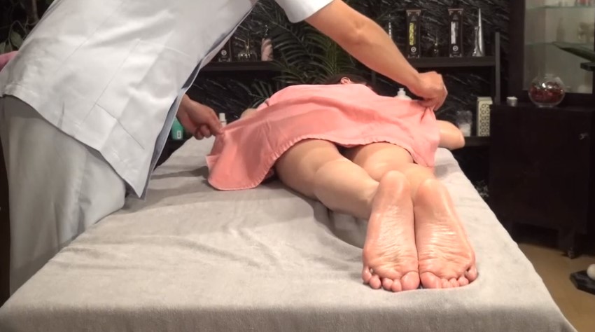 美人人妻のオイルでテカった足裏・・・。人妻寸止め焦らし絶頂中出しエステ