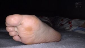 仰向けの足舐め直後にドアップ足裏が登場。25秒くらいとある程度まとまった時間見られる。